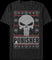 This Punisher t-shirt is designed to look like an ugly knit Christmas sweater. The shirt shows Punisher's iconic skull logo surrounded by crosshairs and snowflakes.