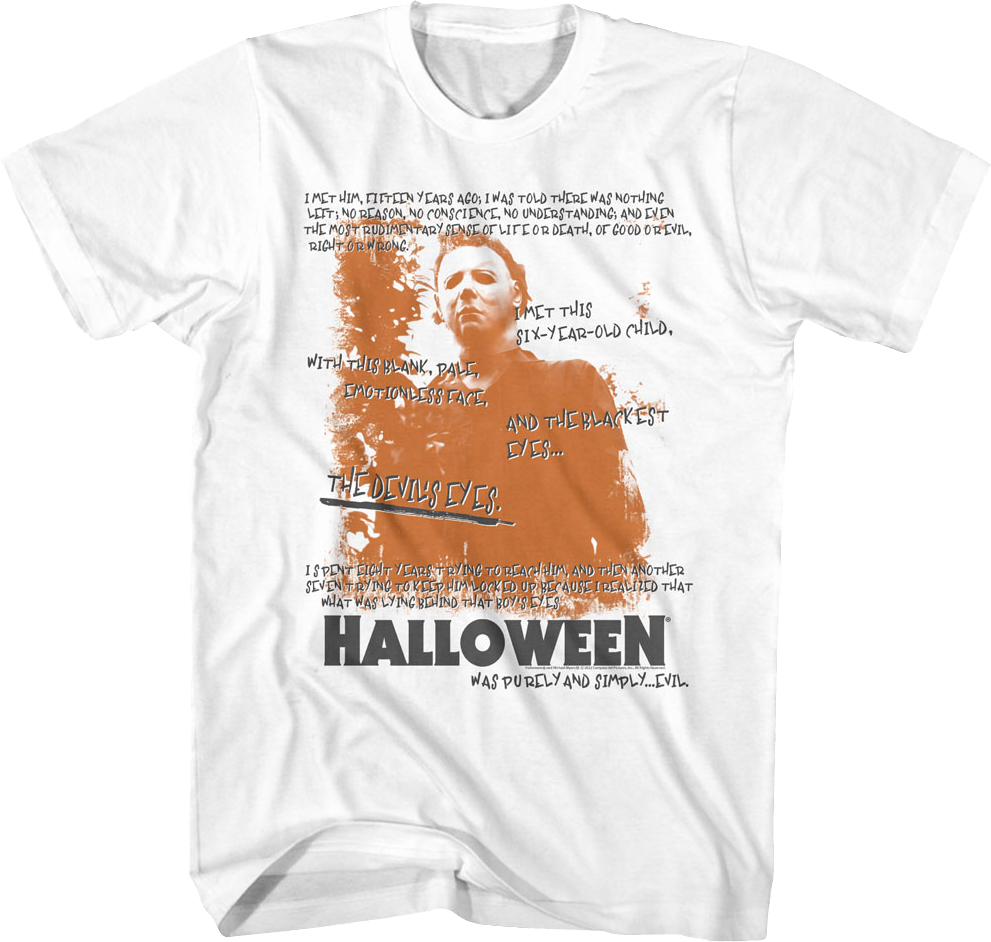Halloween is one of the most frightening slasher movies of all time. Let everyone know you are a fan of John Carpenter's 1978 classic when you wear this Purely And Simply Evil Halloween T-Shirt!
