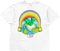 This Grateful Dead t-shirt shows a rainbow starting in one pot of gold and ending in another pot of gold. The rainbow stretches over the planet Earth, and a leprechaun is stepping over the planet.