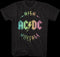 Just when the world needed a new band to light the way for rock music, AC/DC appeared with their debut album High Voltage. This AC/DC t-shirt shows the band's name and the album's title in rainbow colors.