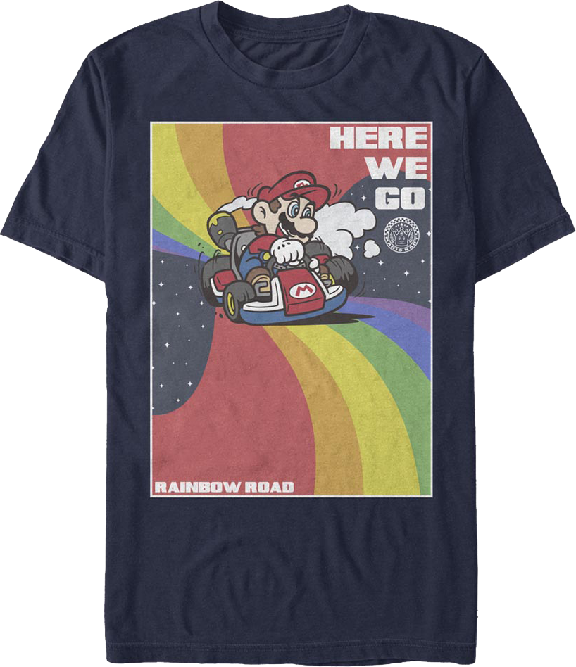 Rainbow Road has become one of the most iconic courses in the Mario Kart franchise. Everyone will know you are a fan when you wear this Rainbow Road Mario Kart T-Shirt!