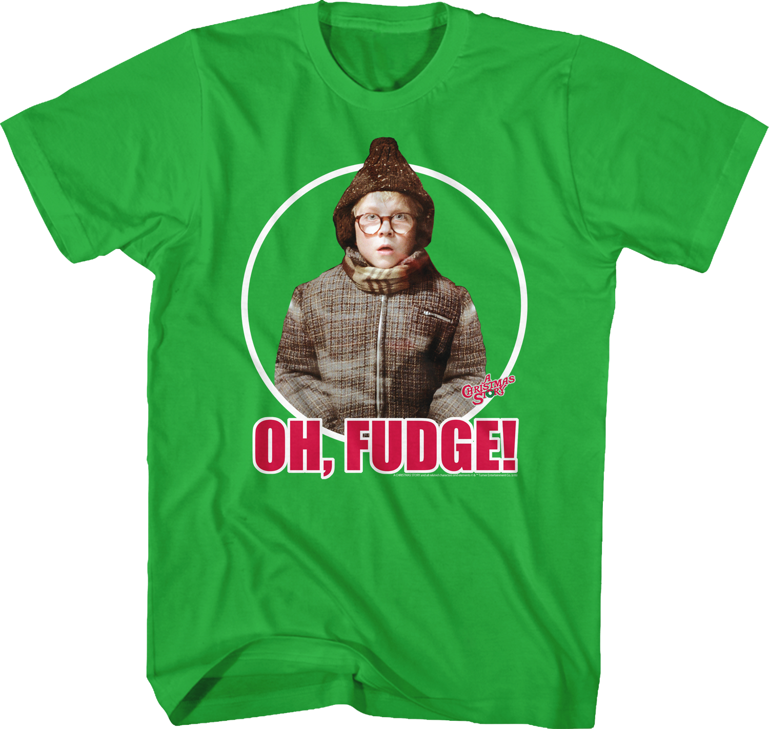 This Christmas Story t-shirt features an image of Ralphie Parker. The shirt shows Ralphie's famous quote Oh, Fudge!