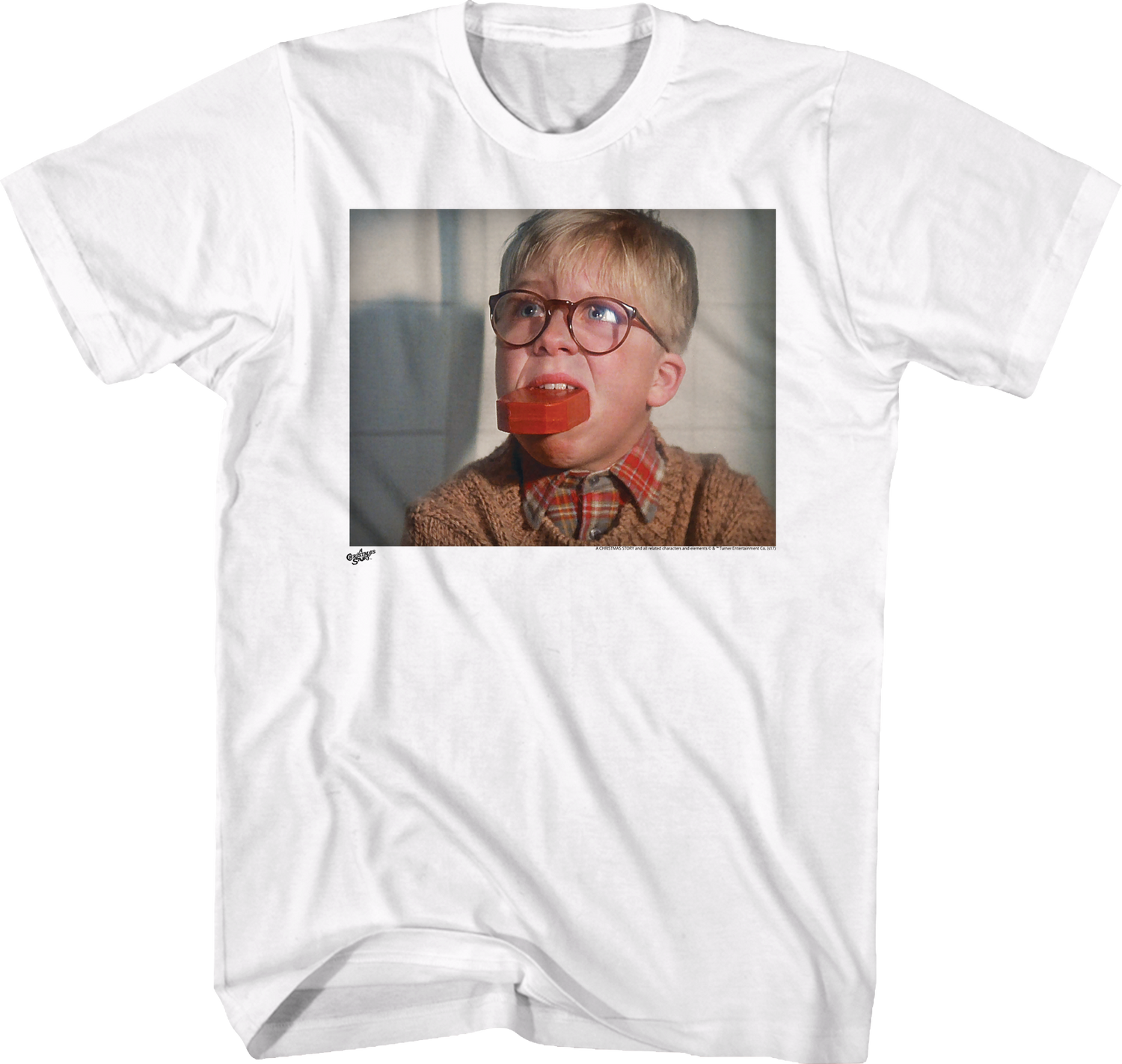This Christmas Story t-shirt features an image of Ralphie with a bar of soap in his mouth.