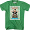 This Garbage Pail Kids t-shirt features an image of the collectible sticker for Rappin' Ron, who appeared on card number 46a in the second series. The sticker shows a Garbage Pail Kid version of Ronald Reagan standing at the presidential lectern. Not even the President of the United States was safe from being spoofed by the Garbage Pail Kids. Let everyone know you are a fan of the popular sticker trading cards with this Rappin' Ron Garbage Pail Kids T-Shirt!