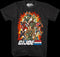 GI Joe is the code name for the daring characters that appear on this shirt. Duke, Snake Eyes, Barbecue, Rock 'n Roll, Flint, Lady Jaye, Roadblock, Bazooka and Scarlett are ready to defend human freedom against Cobra. All your favorite Joes appear with their original box art assets!