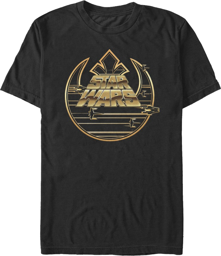 For any fan of the greatest space saga in a galaxy far, far away, this Rebel Alliance And Movie Logos Star Wars T-Shirt is a must have!