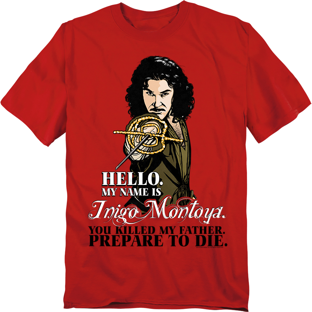 Everyone will instantly know you are a fan of the 1987 classic starring Mandy Patinkin when you wear this Red Inigo Montoya Illustration Princess Bride T-Shirt!
