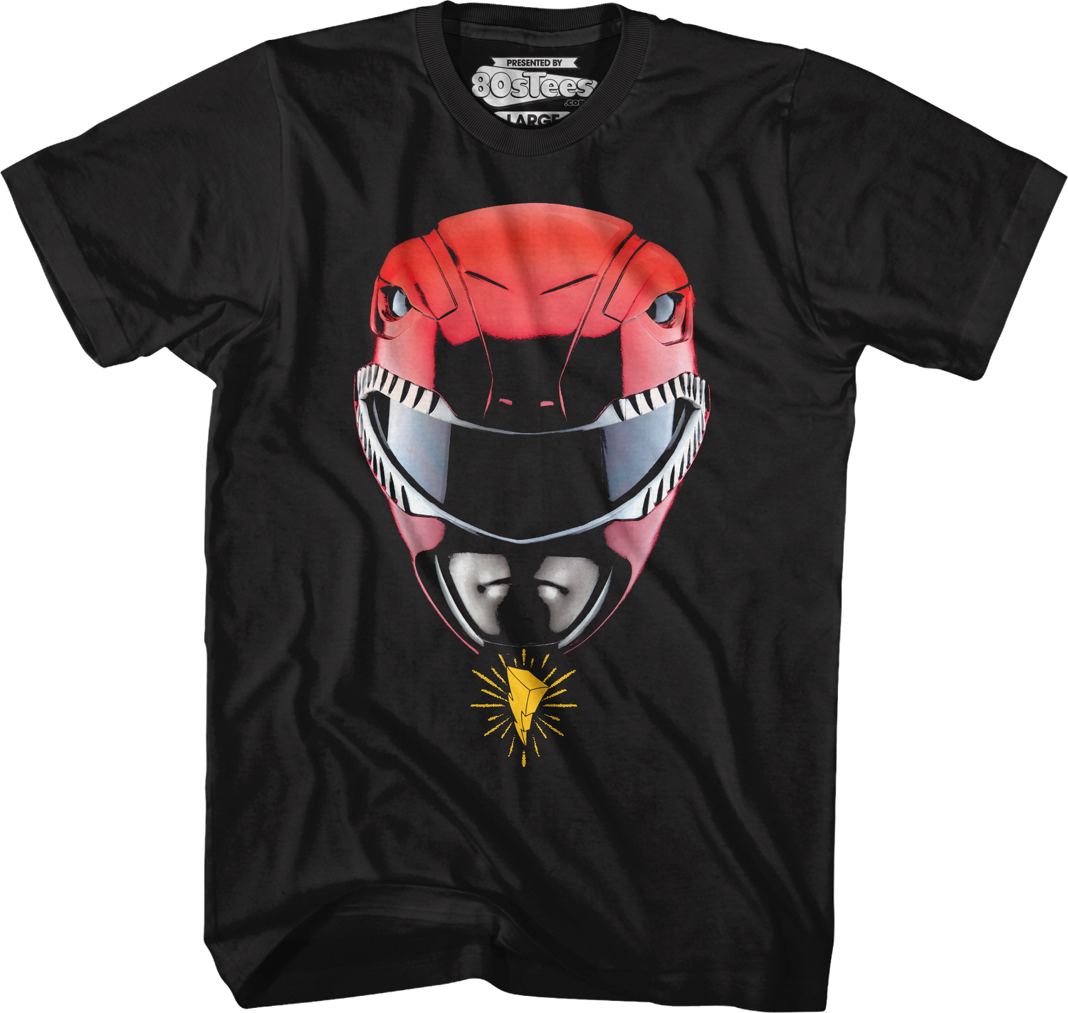 Let everyone know that the Red Ranger is your favorite ranger with this 80sTees.com exclusive Red Ranger Helmet Mighty Morphin Power Rangers T-Shirt!