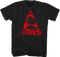 This Red Shark Jaws T-Shirt shows a blood-red image great white shark jumping from the water to attack its next victim above the movie's logo. In the movie Jaws, a giant shark terrorized Amity Island and made the movie one of the most terrifying cinematic experiences of all time!