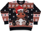 This 80sTees.com exclusive sweater shows a reindeer wearing a Santa Claus hat and winter gloves. The front, back, and sleeves of the sweater feature Christmas snowflakes.