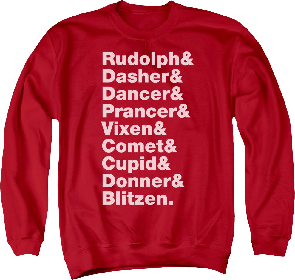 Everyone will immediately know you are a fan of jolly Saint Nick and his reindeer when you wear this Reindeer Names Christmas Sweatshirt!