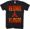 Klingons are the aggressive interstellar military power that value honor and combat. This Star Trek t-shirt shows the iconic Klingon emblem, and reads Remain Klingon.