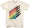 This Back To The Future t-shirt shows Doc Brown's time traveling DeLorean in retro rainbow colors.