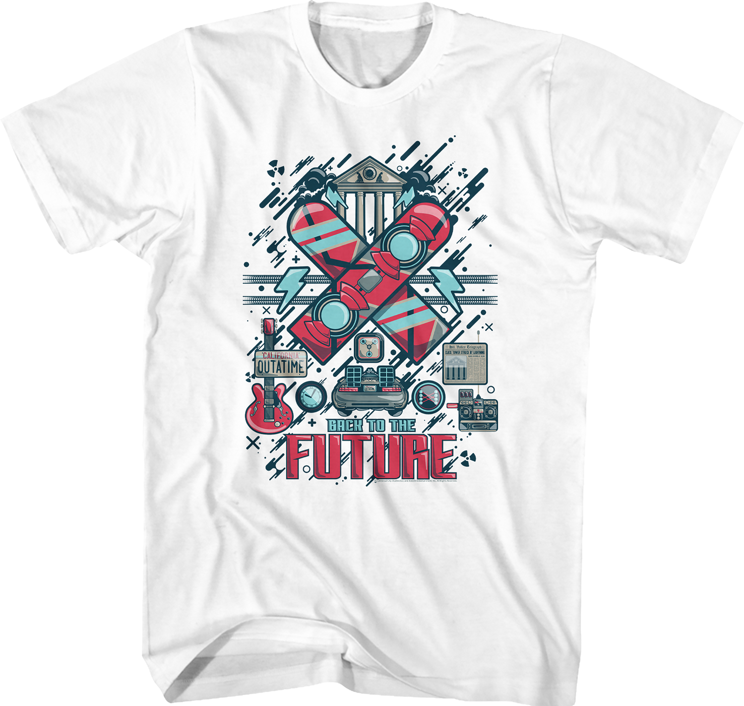 The original Back To The Future was the highest-grossing film of 1985 and became an international phenomenon, and paved the way for one of the greatest trilogies in cinematic history. Show that you are a fan of the classic films starring Michael J. Fox and Christopher Lloyd with this Retro Collage Back To The Future T-Shirt!