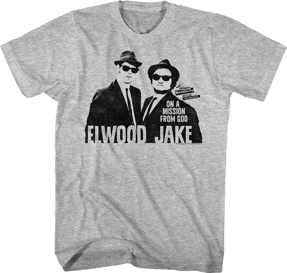 For any fan of the 1980 classic starring Dan Aykroyd and John Belushi, this Retro Elwood And Jake Blues Brothers T-Shirt is a must have!