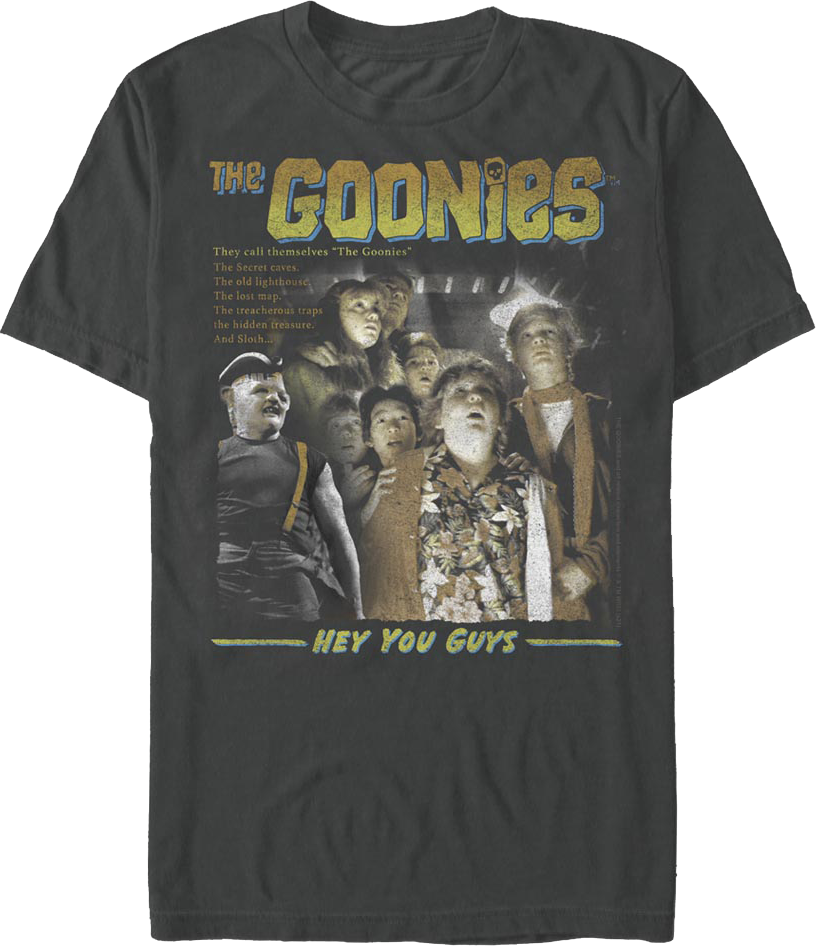 Everyone will instantly know you are a fan of the 1985 classic when you wear this Retro Hey You Guys Goonies T-Shirt!