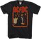 This AC/DC t-shirt features the cover artwork for the band's fifth studio album, Highway To Hell. The cover artwork shows band members Malcolm Young, Cliff Williams, Phil Rudd, Bon Scott, and Angus Young wearing his trademark devil horns.