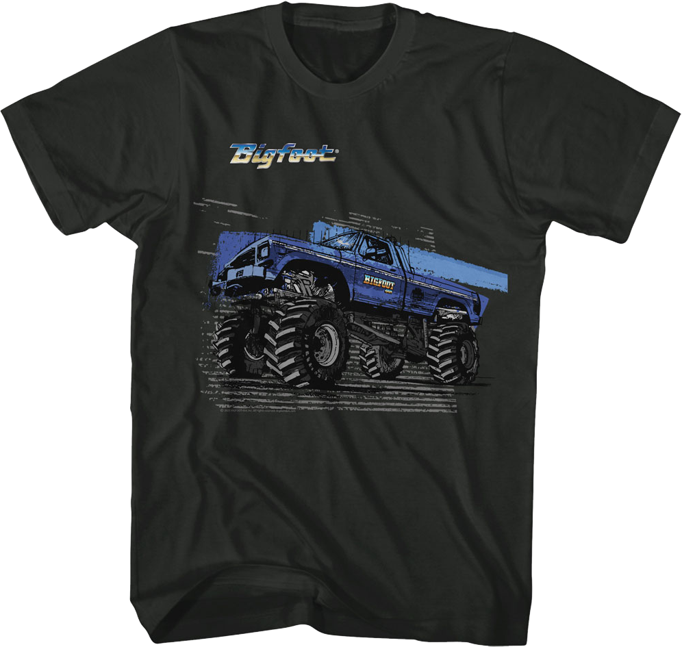 The Bigfoot monster truck was created in the late 1970s by Bob Chandler. In 1981, Chandler drove Bigfoot over a pair of cars as a publicity stunt. Footage of this event spread quickly, sparking the public's fascination with monster trucks and launching Bigfoot's fame. Let everyone know you are a fan of the legendary vehicle when you wear this Retro Monster Truck Bigfoot T-Shirt!