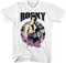 This Rocky t-shirt shows a colorful illustration of the Italian Stallion in a circle. The shirt includes the name of Rocky Balboa's hometown, Philly.