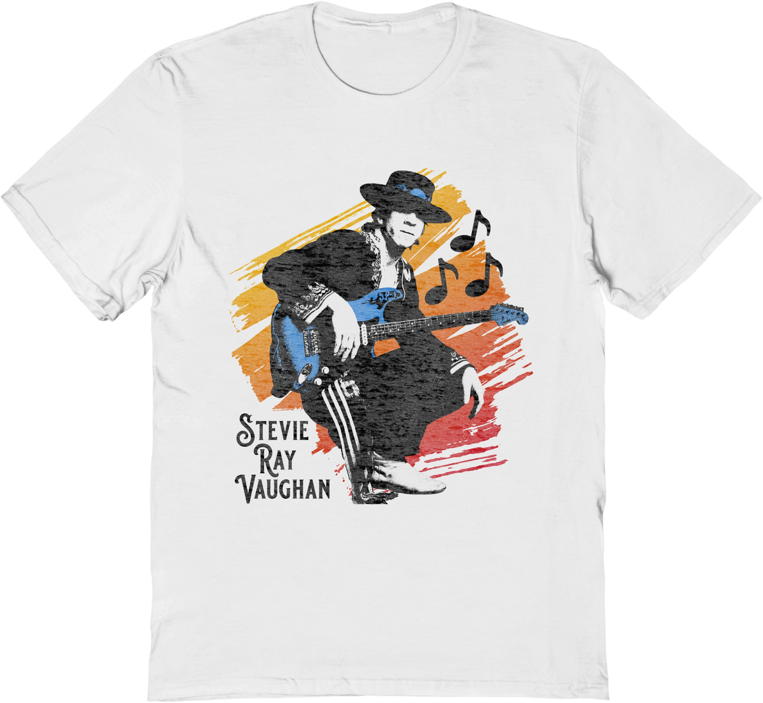 Stevie Ray Vaughan is one of the most influential guitarists of all time, and everyone will instantly know you are a fan when you wear this Retro Pose With Guitar Stevie Ray Vaughan T-Shirt!