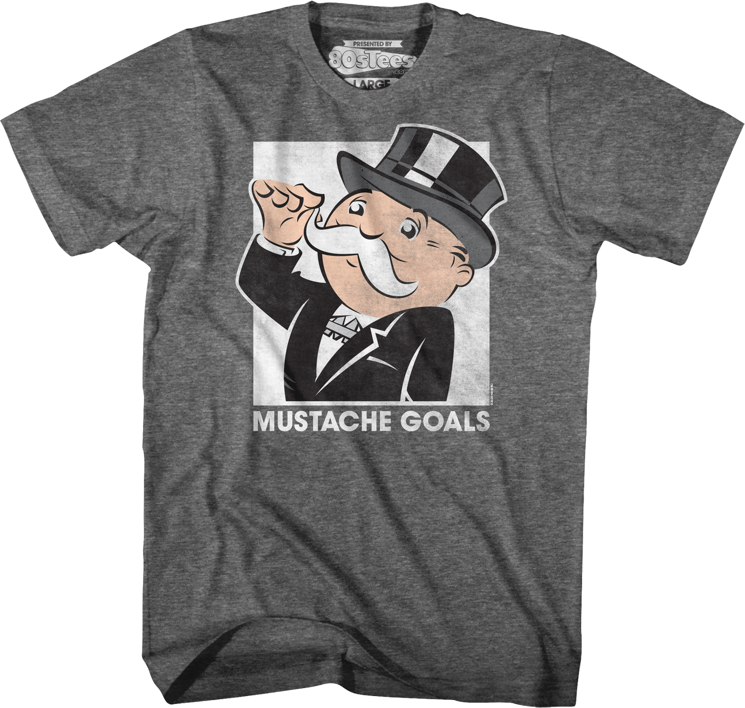 There is no board game mascot as recognizable as Rich Uncle Pennybags. Everyone will know you are a fan of the classic game Monopoly when you wear this 80sTees.com exclusive Rich Uncle Pennybags Mustache Goals Monopoly T-Shirt!