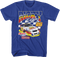 This Talladega Nights t-shirt features a checkered flag, Ricky Bobby's race car, and the logos for Ricky's sponsors Dennit Racing and Laughing Clown malt liquor.