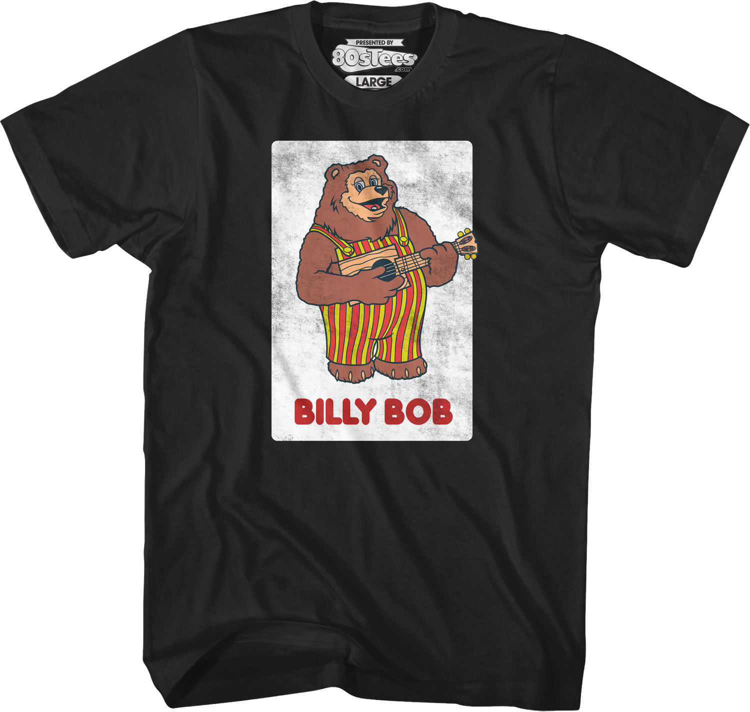 Let everyone know that you are a fan of the mascot for Showbiz Pizza Place with this Rock-afire Explosion Bandleader Billy Bob Showbiz Pizza Place T-Shirt!