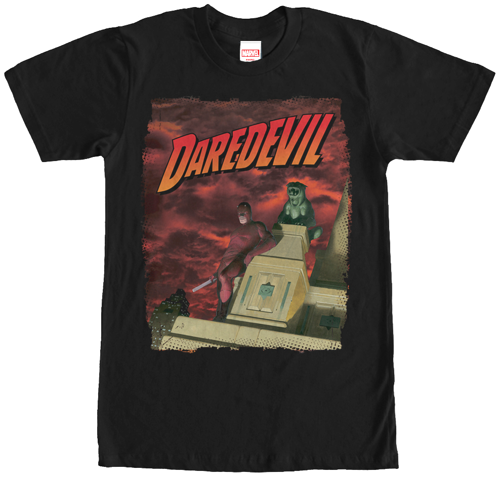 Nobody will need heightened senses to know that Matthew Murdock is your favorite Marvel Comics character when they see you in this Rooftop Daredevil T-Shirt.