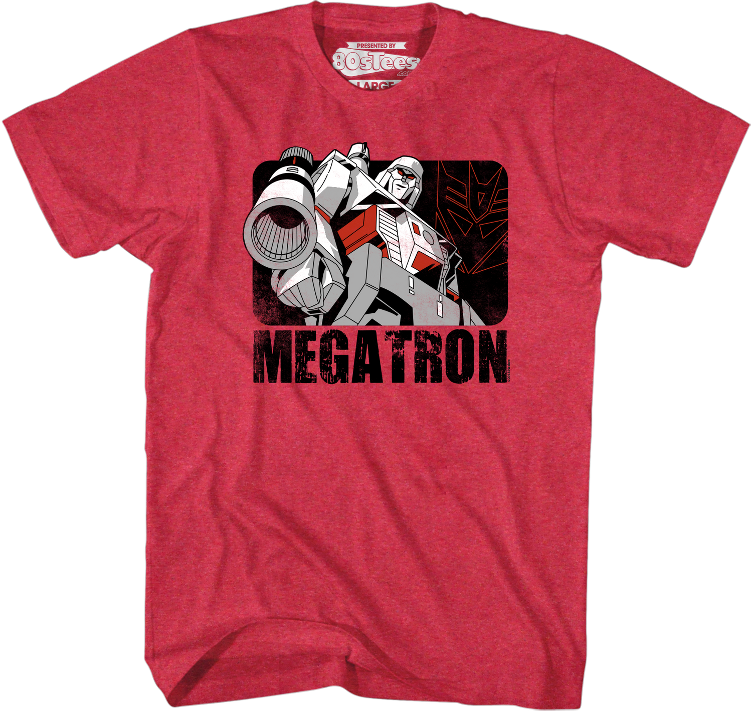 As the leader of the Decepticons, Megatron is one of the most popular characters in the Transformers franchise. Everyone will know you are a fan when you wear this 80sTees.com exclusive Rustic Megatron Transformers t-shirt!