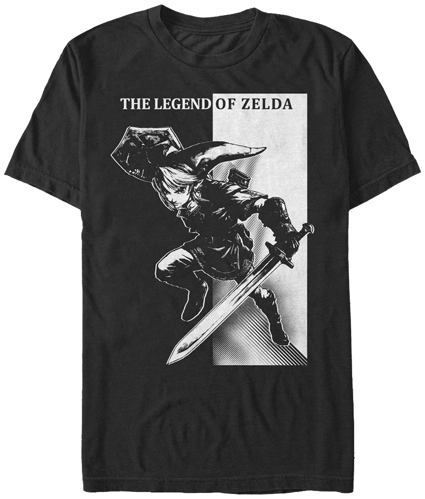 Fans of the Legend of Zelda franchise will instantly recognize the Hylian Link, who is seen holding his shield and Master Sword. This shirt will also be eye-drawing for fans of Scarface, who will see that first you get the sword, then you get the power.