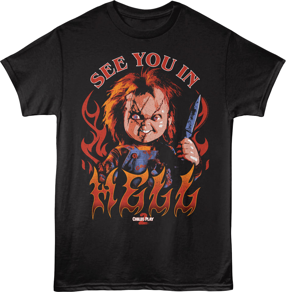 Everyone will know you are a fan of the slasher sequel when you wear this See You In Hell Child's Play T-Shirt!