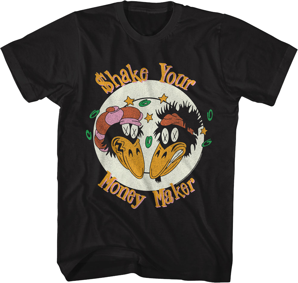 This Black Crowes t-shirt features the band's stoner crows mascots. The shirt includes the title of the band's debut album Shake Your Money Maker.