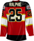 This 80sTees.com exclusive A Christmas Story hockey jersey designed for a team named the Sharp Shooters. The front of the jersey shows the team logo, a crosshair over a broken pair of glasses. The back of the jersey shows the name Ralphie and the number 25 because Ralphie got his Red Ryder Carbine Action 200-shot Range Model air rifle on December 25th. The jersey includes the outline of stitching to complete the look of an authentic hockey jersey!
