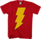 This Shazam t-shirt features the lightning bolt logo for the protector of Fawcett City.