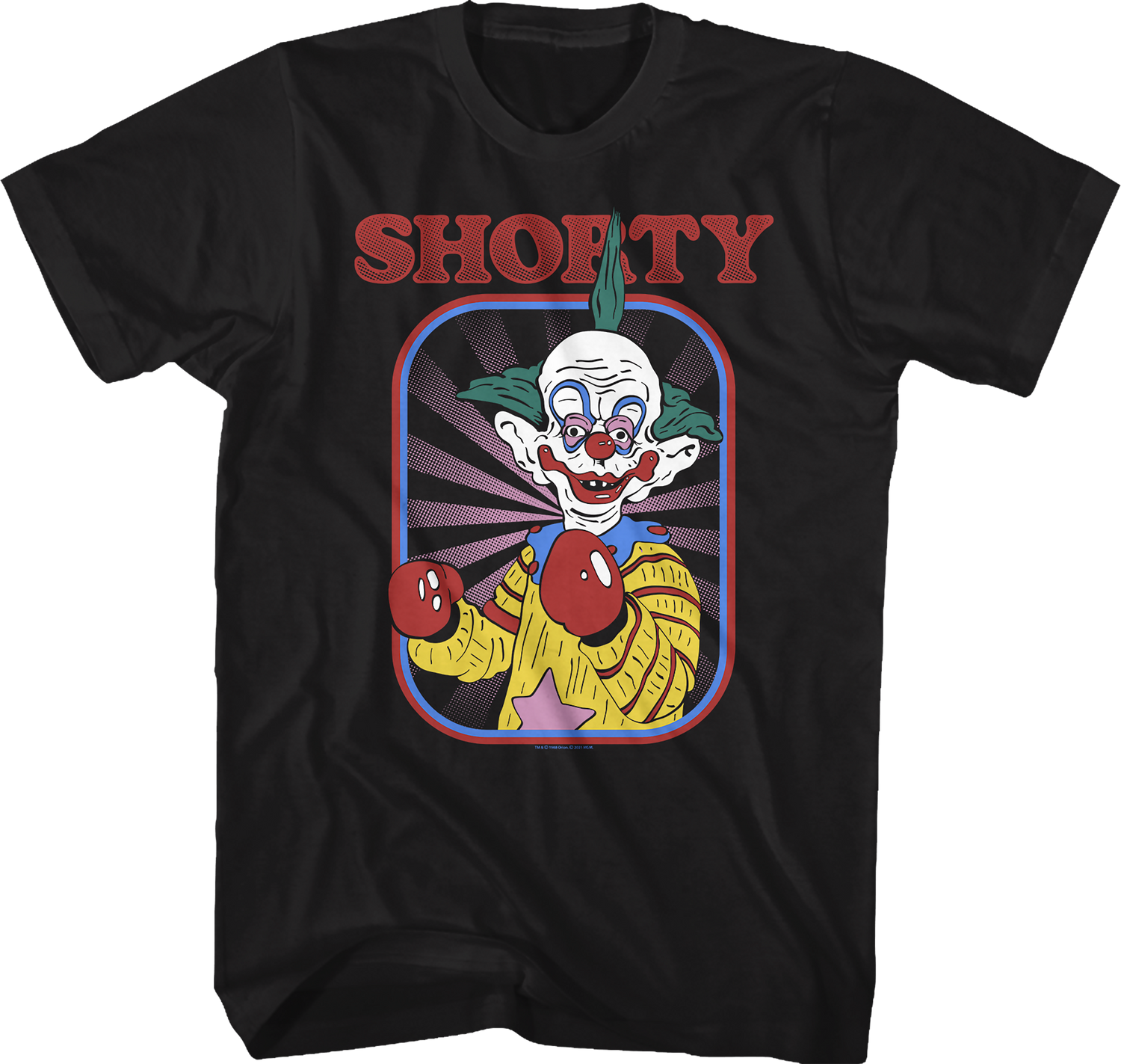 Shorty is instantly recognizable with his clown makeup, green hair, and yellow suit. Everyone will know you are a fan when you wear this Shorty Killer Klowns From Outer Space T-Shirt!