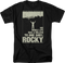 This Rocky t-shirt features a poster that shows a silhouette of Rocky Balboa in the city of Philadelphia. The poster includes the movie's tagline, "His whole life was a million to one shot."
