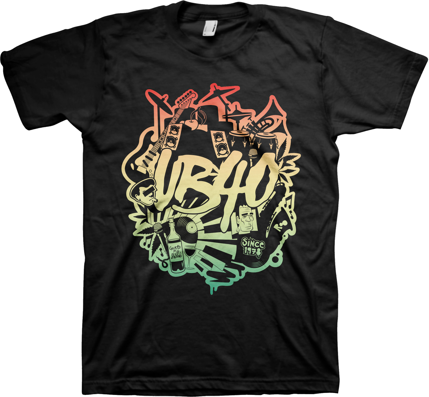 Named after a British unemployment benefit form, UB40 was formed in a welfare line in 1978, and the band's multiracial lineup reflected the working-class community UB40's members came from. The band's hits include "Red Red Wine", "Can't Help Falling In Love", "I Got You Babe" and "Impossible Love". Everyone will know you are a fan of the pop-reggae band when you wear this Since 1978 UB40 T-Shirt!
