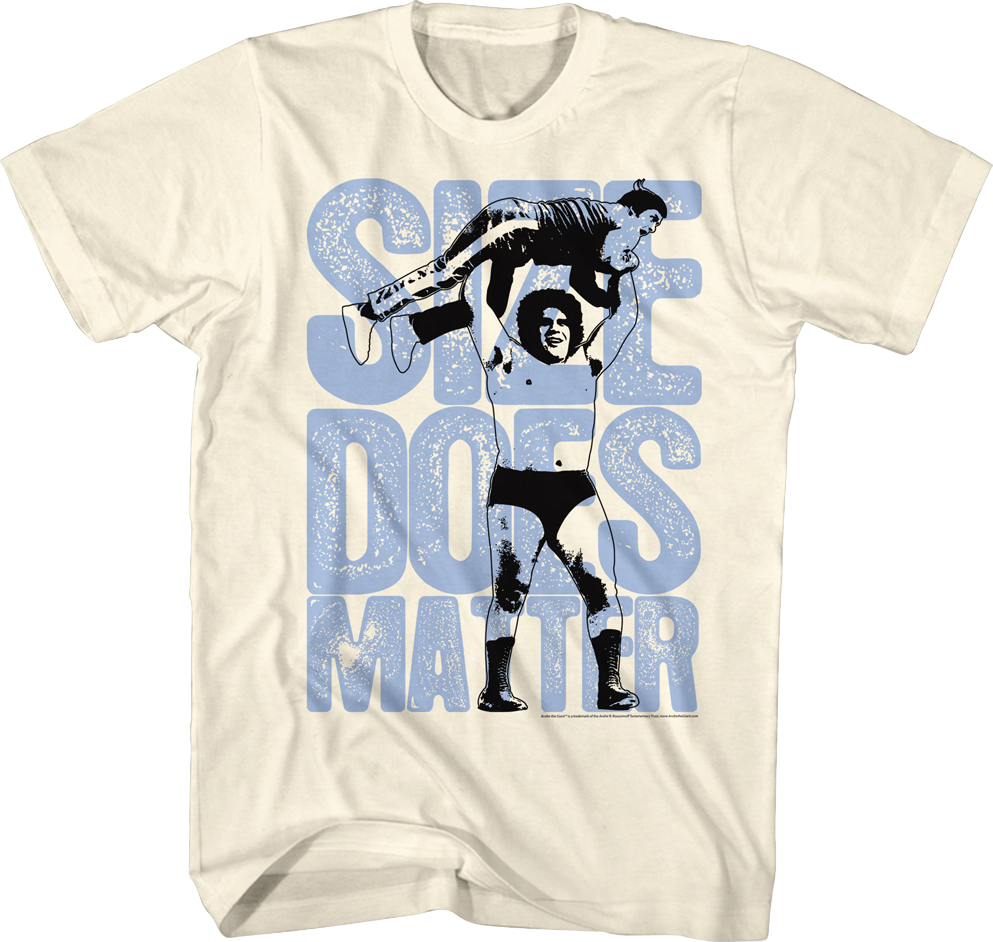 Andre The Giant was such an impressive talent that he was the very first wrestler entered into the WWE Hall of Fame. Everyone will know that you are a fan of the amazing superstar when you wear this Size Does Matter Andre The Giant T-Shirt!
