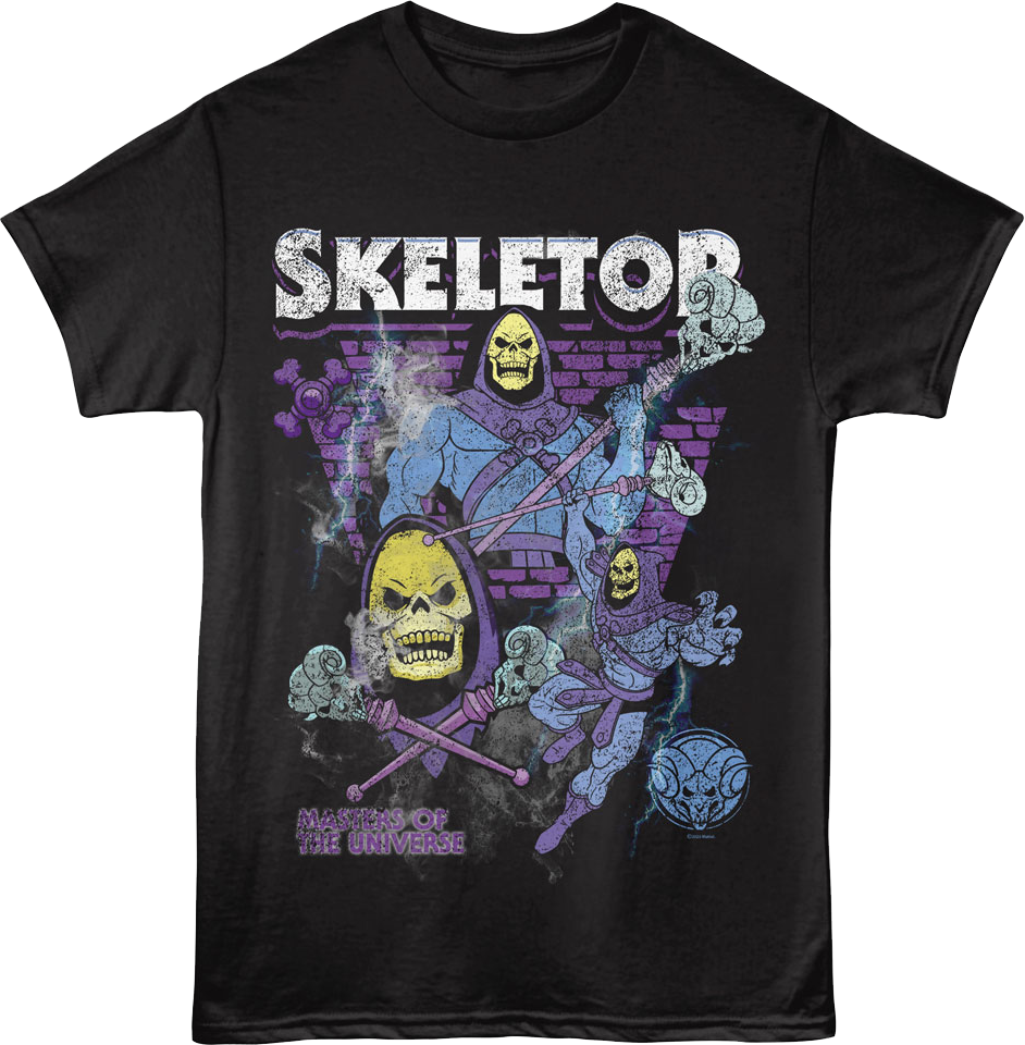 Skeletor is the greatest animated villain of all time, and everyone will know you are a fan when you wear this Skeletor Collage Masters of the Universe T-Shirt!
