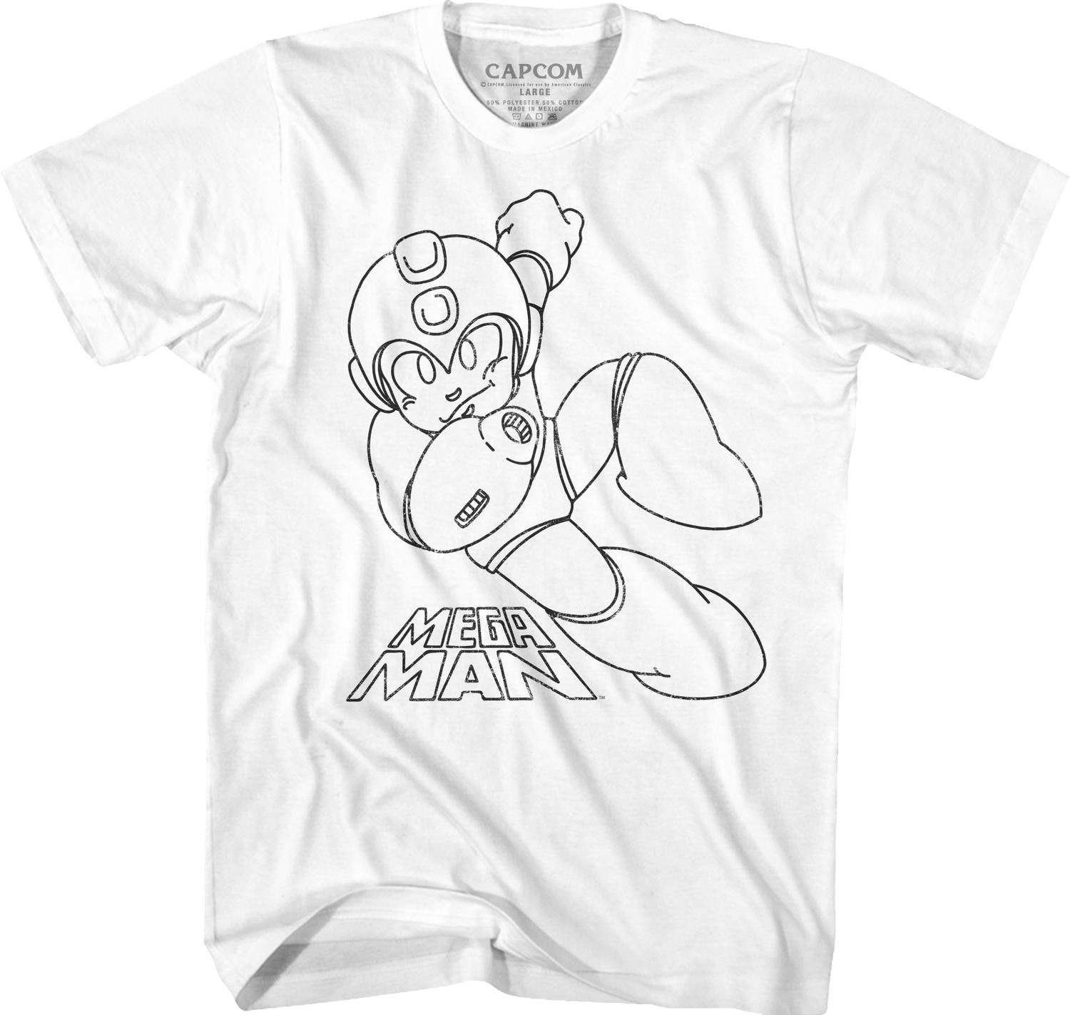 This Mega Man shirt features a black and white sketch of the iconic video game character.
