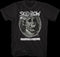 This Skid Row t-shirt features an image of Benjamin Franklin as he appears on the American $100 bill. Pieces of Franklin's head have been removed and replaced by a picture of a skeleton. This shirt shows the title of one of Skid Row's most popular songs, "Youth Gone Wild".