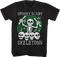 This Spooky Scary Skeletons t-shirt shows a skeleton using bones to play skulls as percussion instruments.