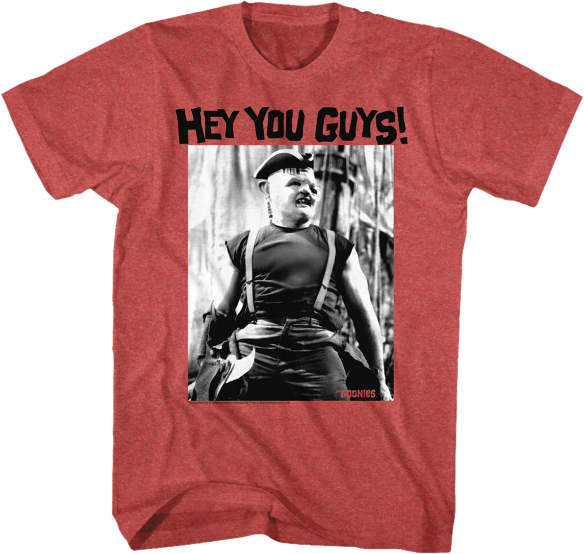 For any fan of the Goonies, this Sloth Hey You Guys t-shirt is a must have!