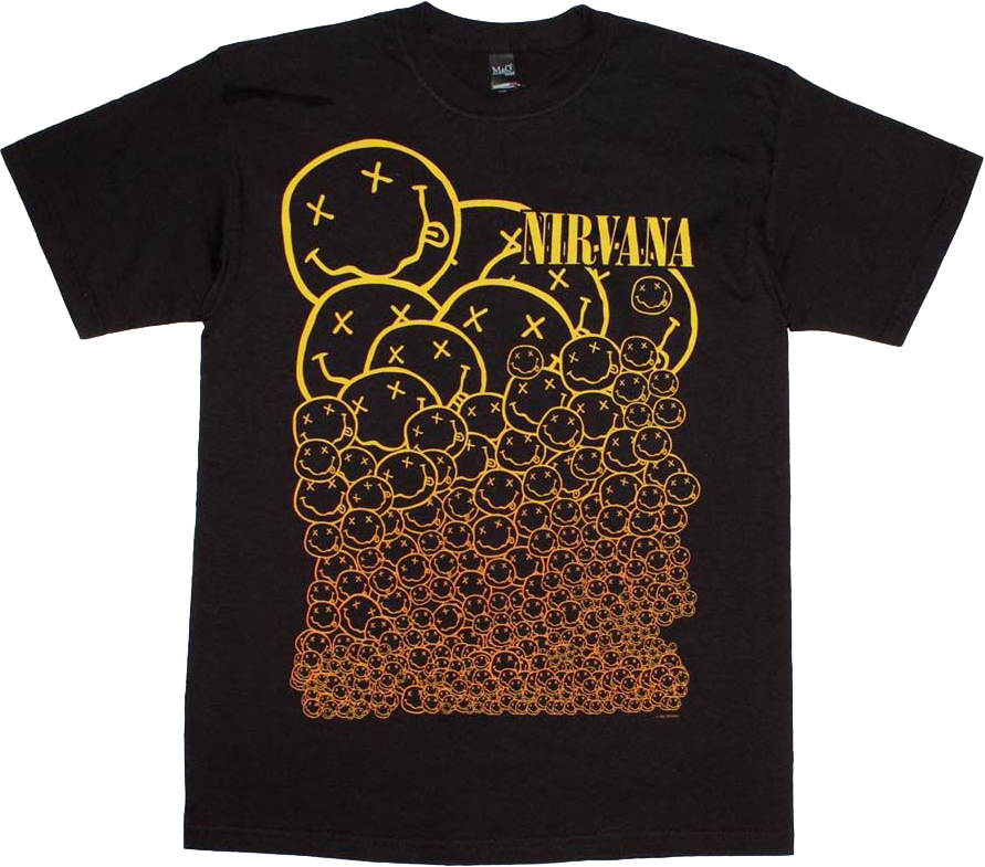 With hits that include "Smells Like Teen Spirit", "Come As You Are" and "All Apologies", Nirvana became one of the most popular bands of all time. Everyone will know you are a fan when you wear this Smiley Face Logos Nirvana T-Shirt!