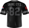 The front of this jersey includes the Arashikage Clan logo and the jersey number 82 because Snake Eyes made his debut in the comic book GI Joe #1 in 1982. The back of the jersey features the name Snake Eyes. The right sleeve shows the Arashikage Clan logo, and the left sleeve shows a stars and stripes logo. This jersey looks and feels like an authentic football jersey, and even includes a GI Joe patch that looks like it has been sewn on the front to complete the look of an official jersey.