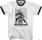 This 80sTees.com exclusive GI Joe ringer shirt features a black and white image of Snake Eyes, his pet wolf Timber, and the logo for the Arashikage Clan.