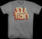 This front of this Soul Train t-shirt features the logo for the groundbreaking show. The back of the shirt reads "Soul. Funk. Disco. Me."