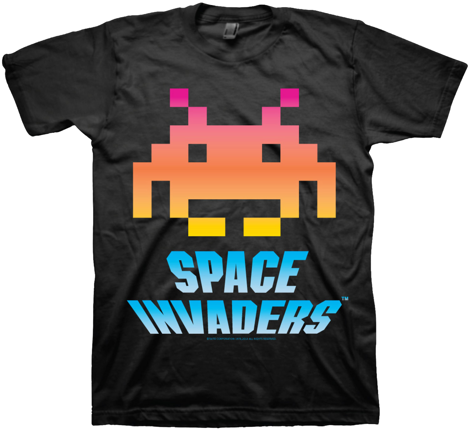 This Space Invaders t-shirt features a pixelated image of the Medium Invader. With a square body and antennae, the Medium Invader is the most recognizable of three alien invaders that threatened Earth in the classic video game Space Invaders. Everyone that sees you wearing this t-shirt will immediately know that you have saved the world playing Space Invaders. For any fan of the game that revolutionized the video game industry, this Space Invaders t-shirt is a must have!