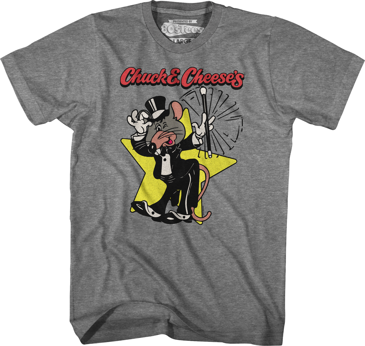 Have Chuck E. Cheese on your mind? Then you're going to love this 80sTees.com Retro T-Shirt featuring Chuck E. in his finest tuxedo and top hat. A very iconic look for a very iconic mouse. Let everyone know you are a fan of the 80’s with this exclusive Chuck E. Cheese T-Shirt!