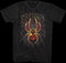 This KISS shirt shows a spider that is painted with the band's iconic face paint climbing in a spider web.